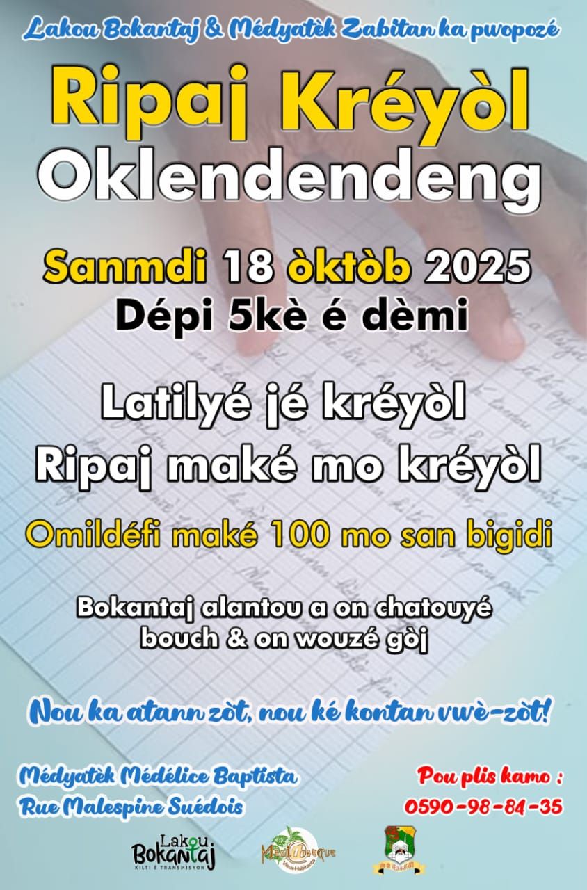 Ripaj kréyol sanmdi 18 òktòb 2025 dépi 5kè é dèmi an médyatèk Médélice Baptista.