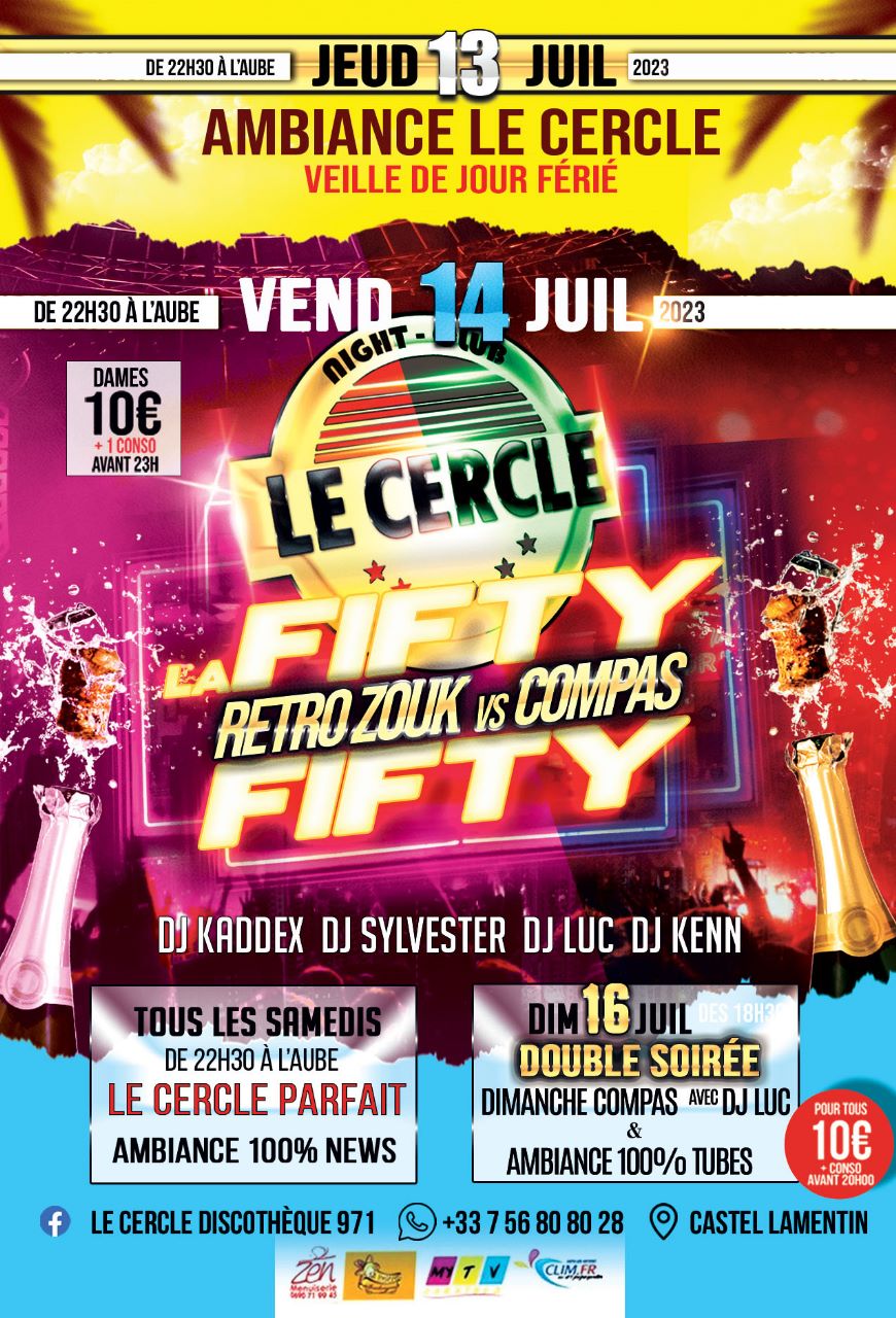 Soirées : Ambiance le Cercle et Fifty Fifty.