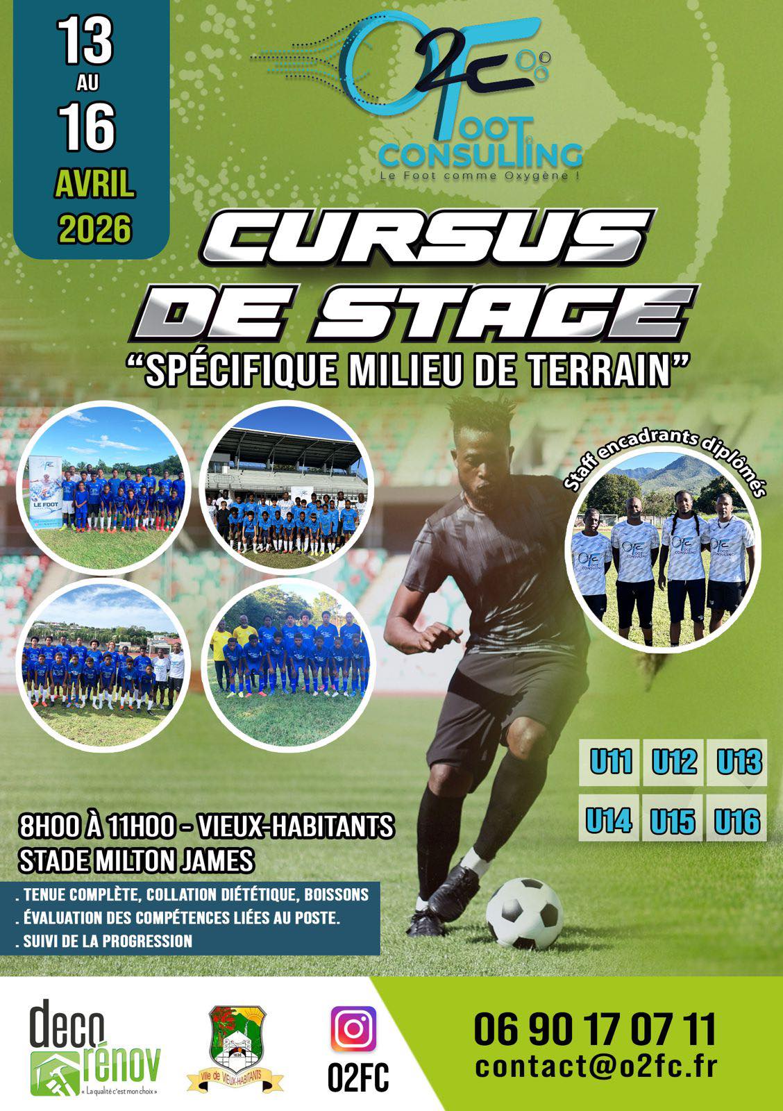 Cursus de stage « spécifique milieu de terrain » avec O2FC Foot Consulting au stade Milton James à Vieux - Habitants.
