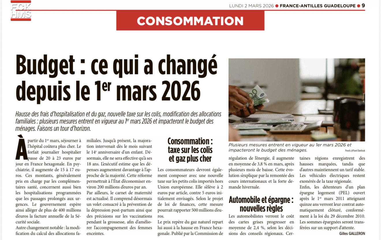 Lire la suite : Budget : ce qui a changé depuis le 1er mars 2026.