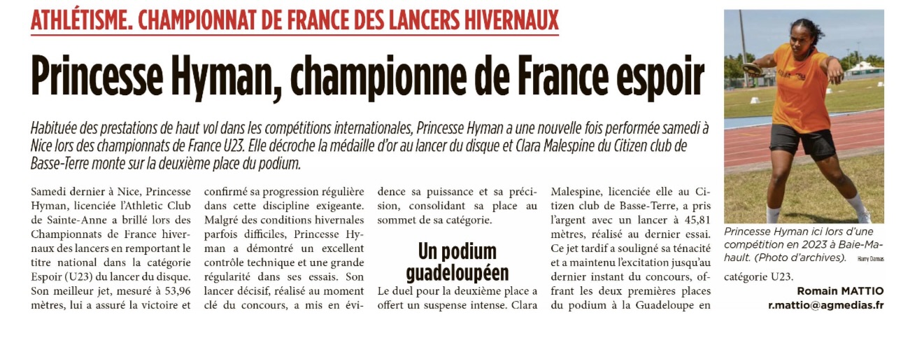 Lire la suite : Princesse Hyman, championne de France espoir.