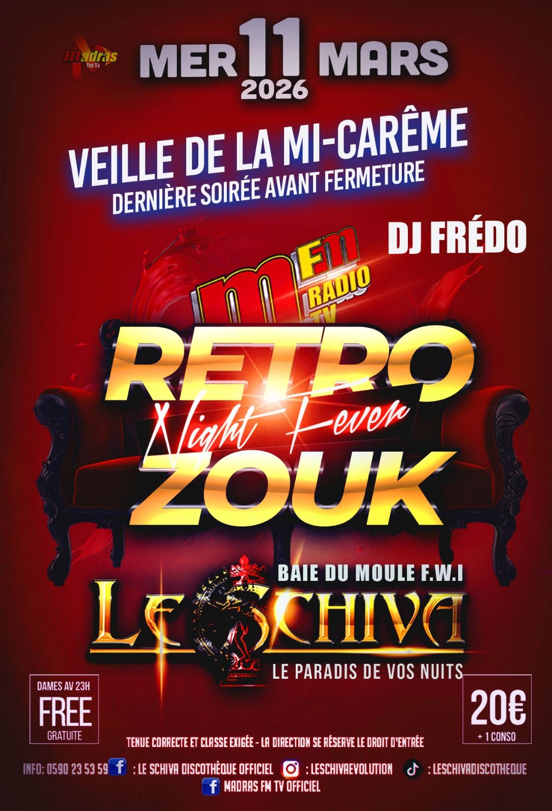 Rétro Zouk Night Fever, mercredi 11 mars 2026 veille de la mi-carême